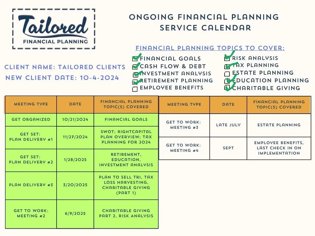 You’ll know what topics we’ve covered and where we are going with custom client service calendars that are sent out with every meeting follow-up email.